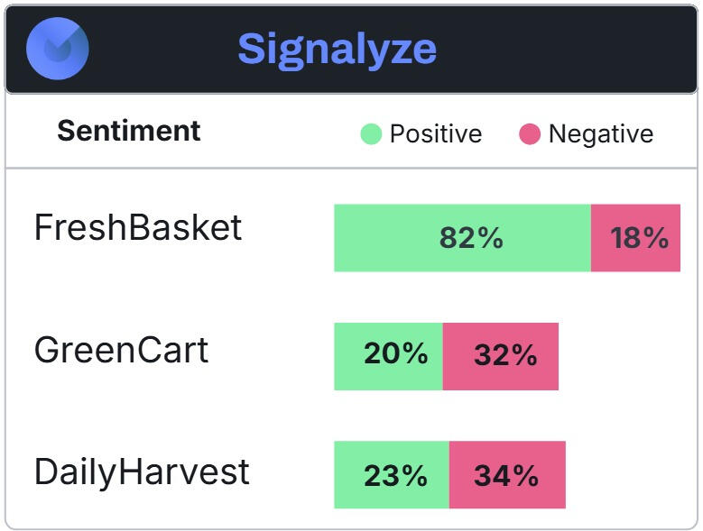 Signalyze provides a clear breakdown of how audiences feel about your brand and competitors. With real-time sentiment analysis, you can see the percentage of positive and negative mentions and identify trends in feedback.